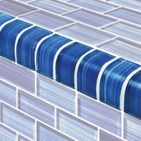 The Caribbean Blue Glass Tile Trim from Artistry in Mosaics' Watercolor Series delivers the professional finishing touch pool contractors need for high-end commercial and residential installations. This 1" x 2" trim tile features coastal-inspired colors with delicate brushstroke design that creates stunning visual impact for discerning clients.